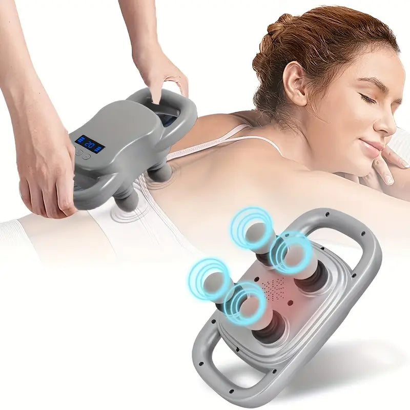 Relieve muscle tension anytime, anywhere with the Portable 4-Head Deep Tissue Massage Gun. Designed for both home and travel use, this compact yet powerful device delivers soothing relief for sore muscles, stiffness, and fatigue. With its ergonomic handle, interchangeable heads, and speed control, it’s the perfect tool for muscle recovery and daily relaxation.
