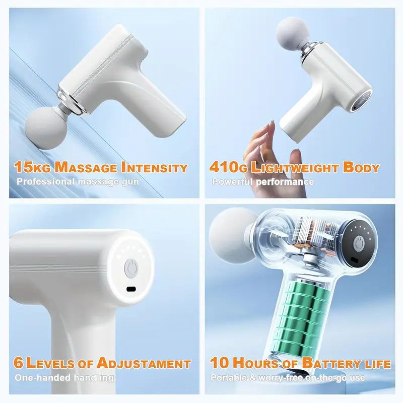 Relieve tension, stiffness, and muscle soreness with this Mini Massage Gun for Body Pain Relief. Designed for portability and performance, it delivers powerful percussive therapy in a compact, lightweight form—ideal for home, office, gym, or travel use.